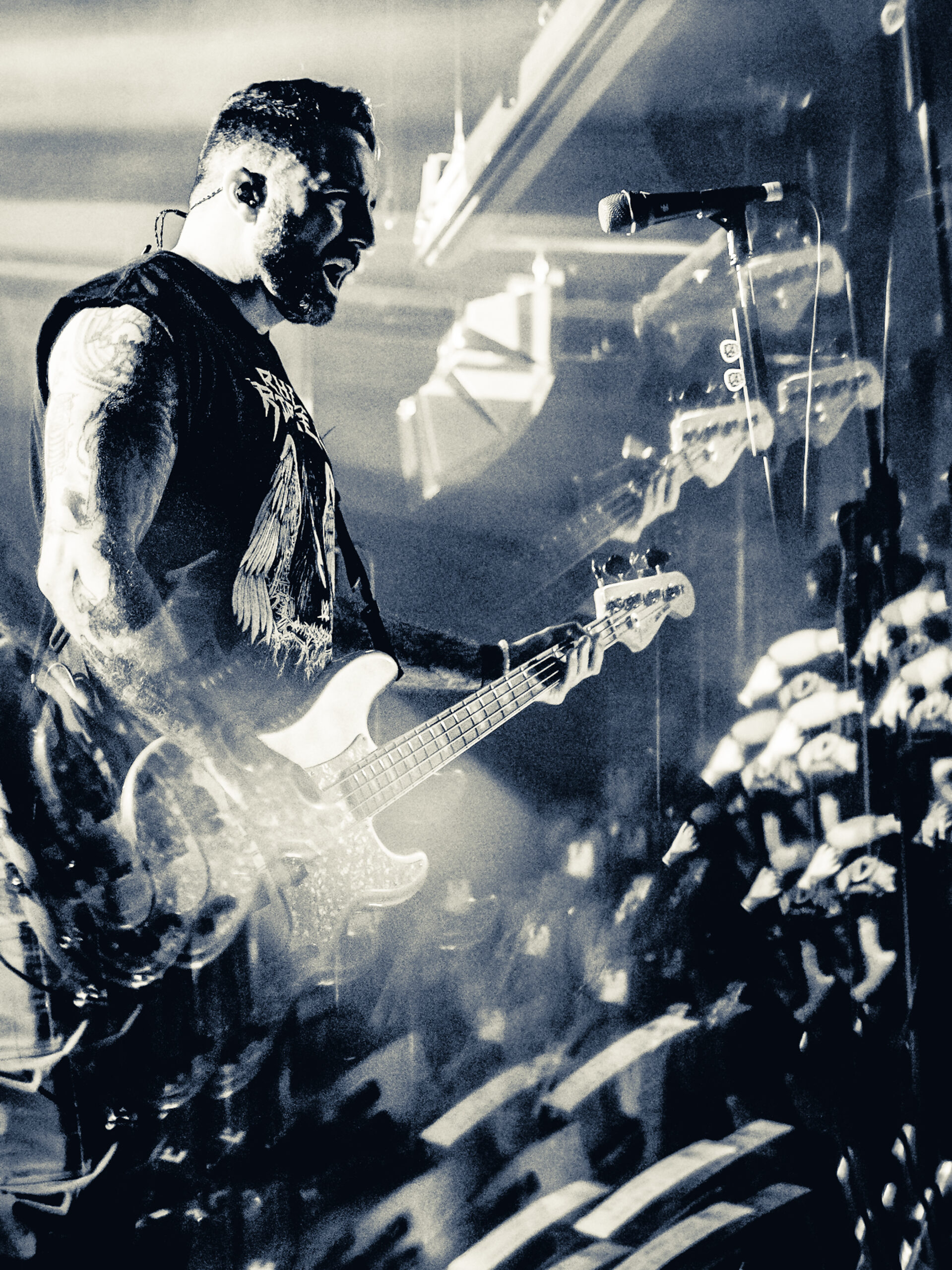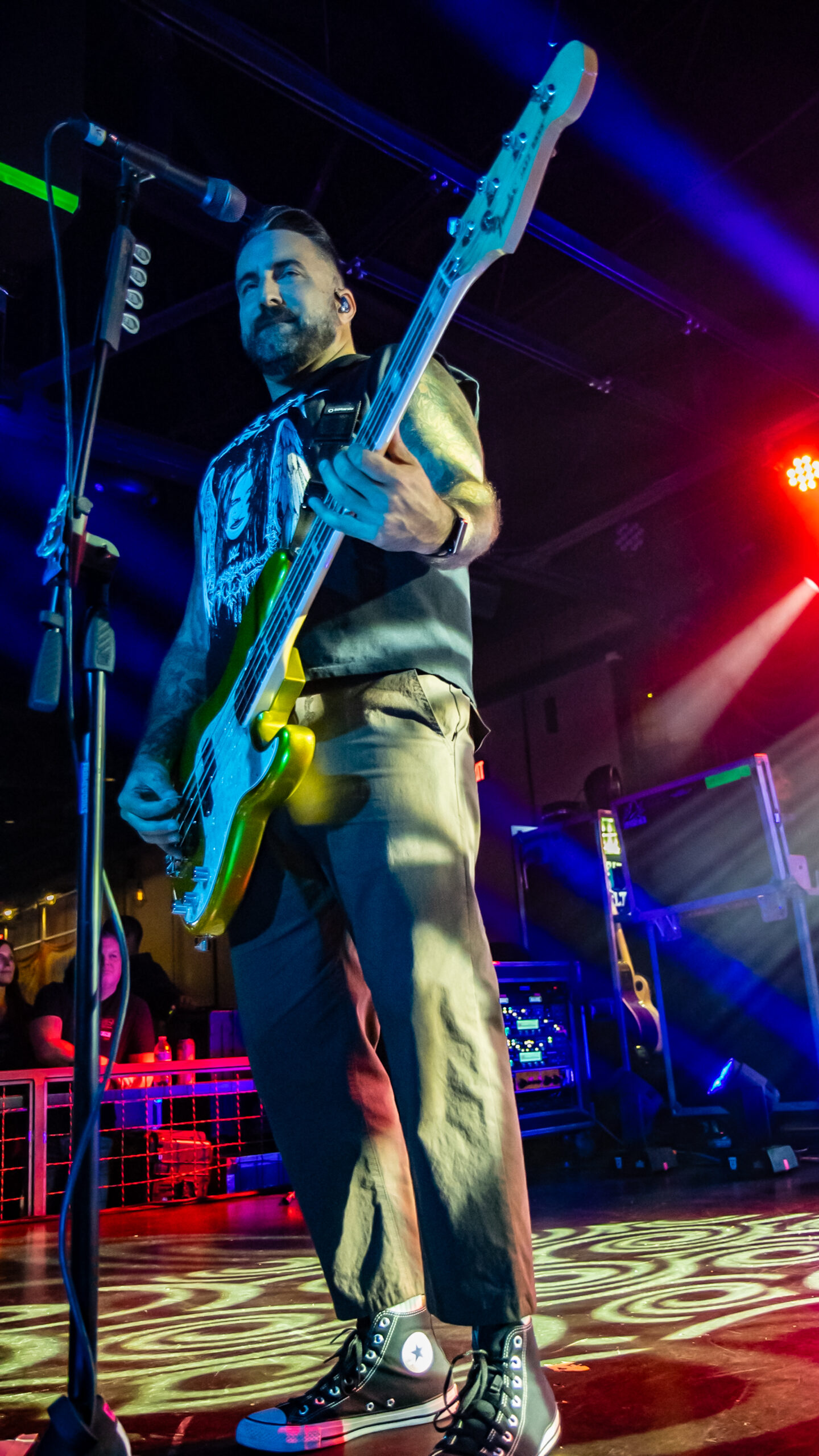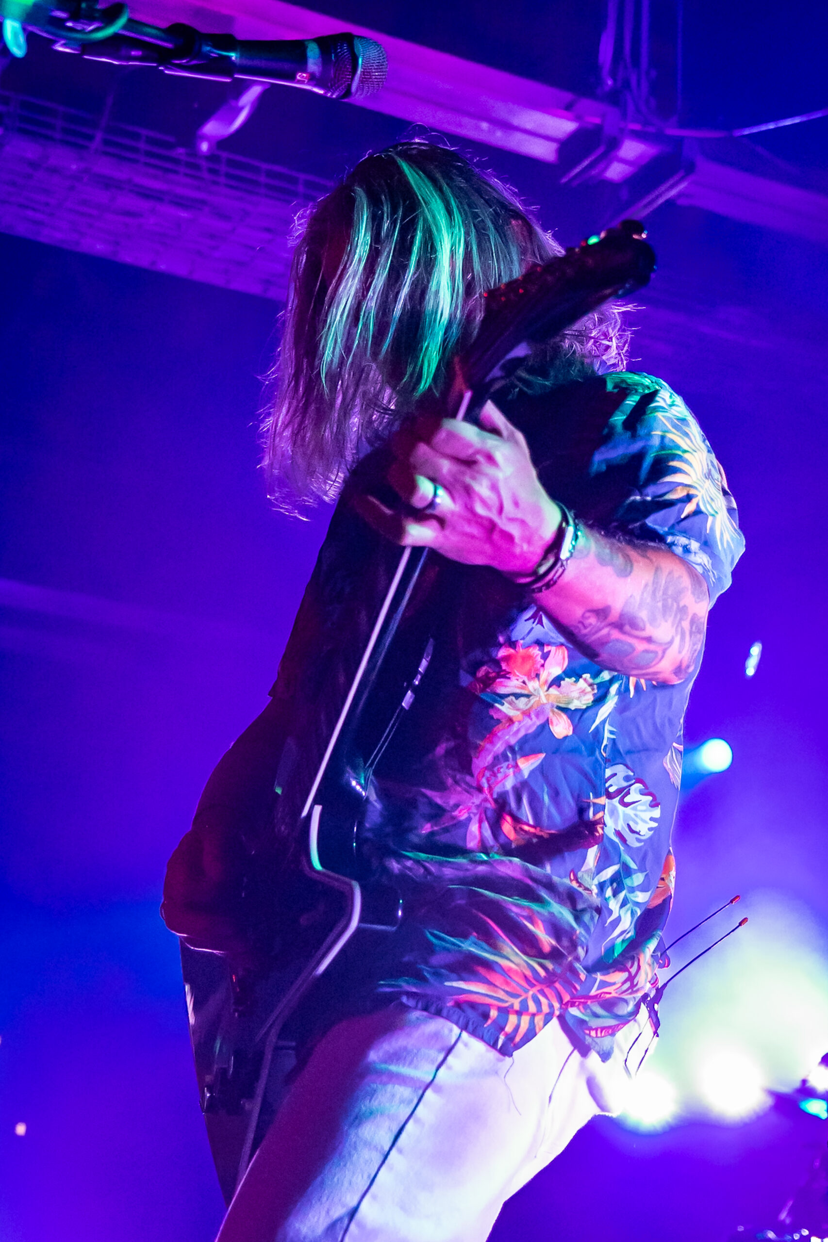 Long Island, NY’s The Sleeping started the night off and brought their unique blend of post-hardcore and raw energy to the stage that really got the audience going. People thrashed around and sang along, and even a toddler hopping up on his dad’s shoulders to get a better view of frontman Doug Robinson, who climbed up to the barrier, putting his microphone up to fans to sing along with them, and eventually even crowdsurfing above their heads at one point. The band has been experiencing a revival since their reunion in 2022 and their fantastic newest album, “I Feel Like I’m Becoming a Ghost”, dropping in 2023.