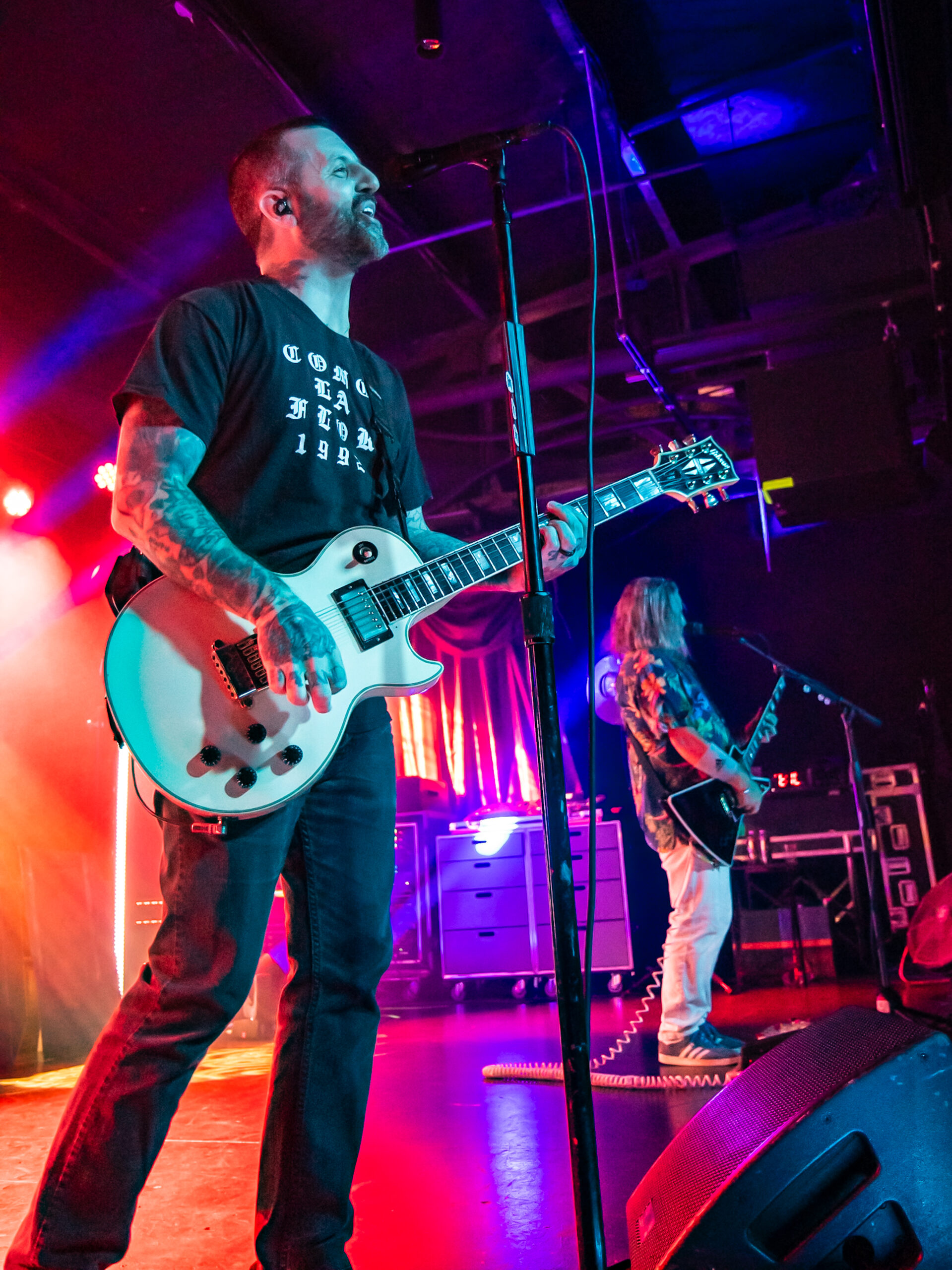 The night of classic nostalgia continued on, with the band delivering high-energy versions of much loved tracks from their third album, 2007’s “The Walking Wounded”, like “Duality”, “I and I”, and the ballad “Landing Feet First” (of which started a massive audience singalong). The band also reached far back in their discography, playing tracks from their first years as a band, like “Masterpiece”, “Guardrail” and “Kellum”, off of the first album, 2004’s “Sirens and Condolences.” The audience was audibly excited by this, as these tracks are very rarely played live. The audience cheered loudly and unleashed a constant stream of crowd-surfers to the front of stage as they ripped through these classic tracks. The “newest” songs they played for night 1 were tracks from 2008’s classic album, “Shudder”, like “Boy”, “No One Understands” and “The Ghost of St. Valentine”. Again, many of these tracks haven’t been played since the Shudder Tour in 2008 so hearing these songs was certainly a treat for the audience.